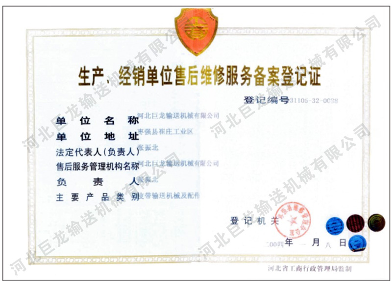 生產/銷售(shòu)售後維修服務備(bèi)案(àn)登記證書查看更多資質