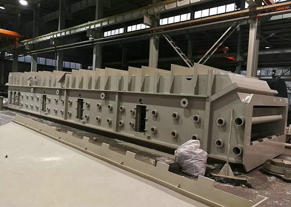 根據槽體尺寸對槽子進行水(shuǐ)平加強筋、垂直加強筋和槽底支撐筋的分(fèn)割,並按照強度和剛度要求驗算槽底和槽壁的(de)板厚,使分割的尺寸能滿足板(bǎn)厚4mm 的要求(qiú)。然 後,根據分割的尺寸,按照強度和剛度要求分別計算水平加強筋、垂直(zhí)加強(qiáng)筋和槽底(dǐ)支撐筋的(de)斷麵係數(shù)和(hé)慣性矩。然後對照各種型鋼的斷麵係數和慣性矩,選擇合適的型鋼(gāng)。